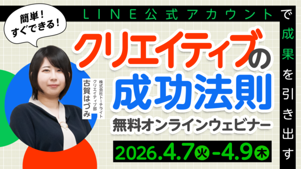 ご好評につき再開催!【4/7(火)-9(木)】 今すぐできる!LINE公式アカウントで成果を引き出す!クリエイティブの成功法則